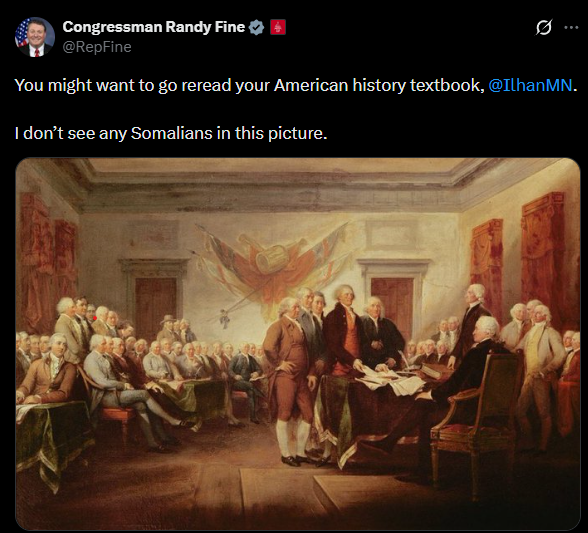 Fine: You might want to go reread your American history textbook, @IlhanMN. I don’t see any Somalians in this picture.